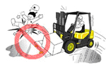 Forklifti kaygan yüzeylerde kullanmayınız. Kum,çakıl, buz veya çamurlu zeminlerde devrilmeyle sonuçlanan kazalar yaşanabilir. Kullanım kaçınılmaz ise yavaş kullanın. |