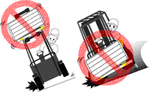 Güvenli olmayan ve dengesiz yükleri kaldırmayın ve taşımayın. Taşıyacağınız yükün ağırlık merkezini dengeleyerek yükleme yapın. Dengesiz yükler devrilme riskini arttıracaktır. Çatal aralıklarını yükün ağırlık merkezine göre dengeleyerek aralayın ve yükü daima düzgünce istifleyerek taşıma yapın. Mutlaka uygun büyüklükte bir palet kullanın. Çatalları yükün altında olabildiğince geniş aralıklı tutmaya çalışın. Yükü her iki çatala da eşit dağıtın ve tek çatalı kullanarak asla taşıma yapmayın. |