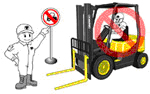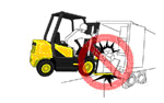 Forklift çatallarında kimseyi taşımayın veya kaldırmayın. Diğer insanların forklift'in yanlarına binmesine izin vermeyin. Forklift!ler sadece yük taşımak için |