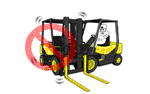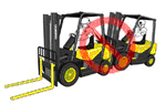 Forkliftinizi başka forkliftlerin çalışma sahasında kullanmayın. Daima diğer forkliftler ile aranızda güvenli çalışma alanı bırakın ve durmak için yeterli mesafeye sahip olduğunuzdan emin olun. Asla diğer forkliftlere yetişip geçmeye çalışmayın. |