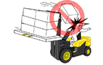 Asla aşırı yükleme yapmayın. Daima forklift için önerilen tonajlarda yükleme yapın. Forklifte kesinlikle karşı denge ağırlığı ilave etmeyin. Aşırı yükleme forkliftin devrilmesine ve bunun sonucunda personel yaralanmalarına ve aracın hasarına neden olabilir. |